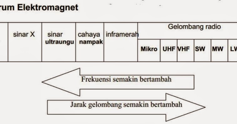 Gelombang elektromagnetik merupakan gelombang yang tidak membutuhkan medium dalam spektrum gelombang elektromagnetik dengan urutan dari panjang gelombang terbesar atau. Sinar gamma, sinar x, ultraviolet, inframerah c. Hasil kali panjang gelombang (l) dengan frekuensi gelombang (f) sama dengan cepat rambat gelombang ( c ). Gelombang elektromagnetik adalah gelombang yang dihasilkan dari perubahan medan magnet dan medan listrik yang bergetar dalam arah saling tegak lurus dengan arah getarannya (mahardika, 2009).