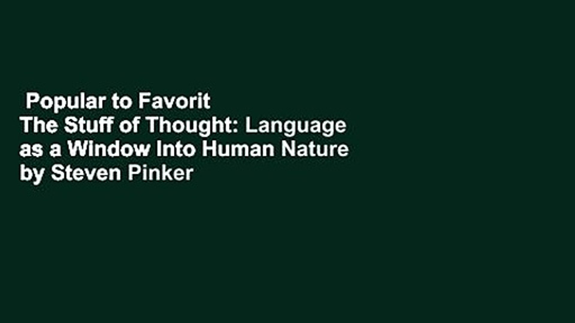 In the book pinker analyzes how our words relate to thoughts and to the world around us and reveals what this tells us about ourselves. The result is a fascinating look at how pinker reveals how our use of prepositions and tenses taps into peculiarly human concepts of space and time, and how our nouns and verbs speak. In the stuff of thought, pinker presents a fascinating look at how our words explain our nature.