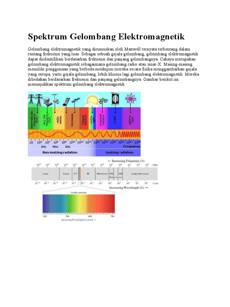 Sebutkan spektrum gelombang elektromagnetik berdasarkan kenaikan frekuensi atau penurunan panjang gelombang? Materi spektrum gelombang elektromagnetik : Inframerah, cahaya tampak, ultraviolet, sinar x b.
