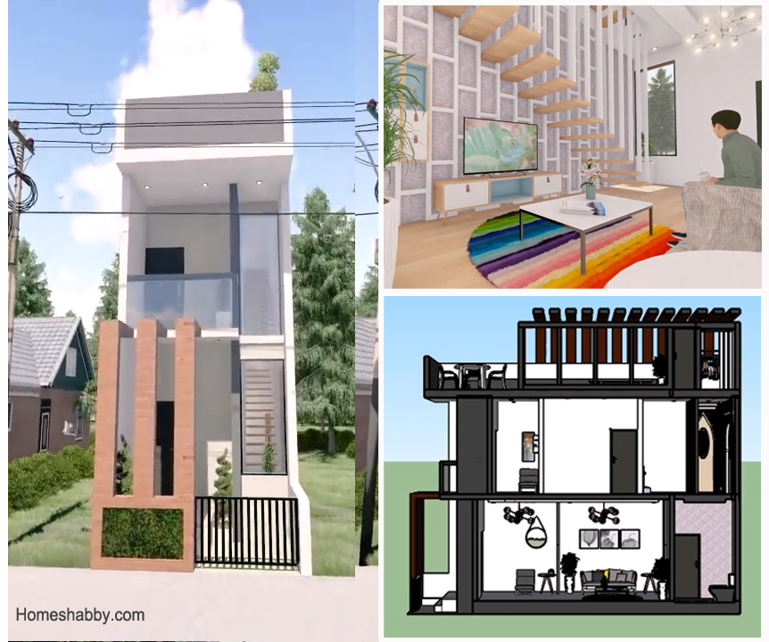 Desain rumah tinggal 3 lantai di atas lahan 4 x 15 meter persegi via mannusantara.blogspot.com.